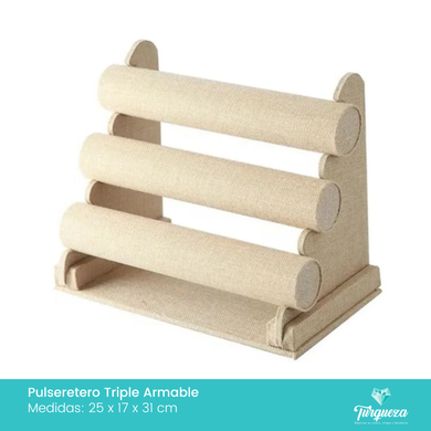 Exhibidor Pulseretero Triple Armable Tubo Tela Tipo Yute Beige