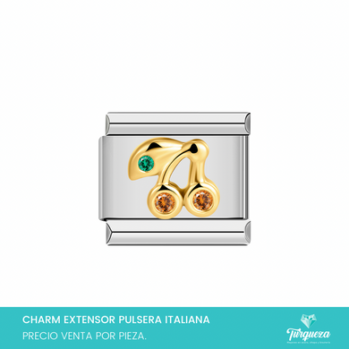 Dije Charm Cerezas para Pulsera Tipo Italiana Dorado Acero Inoxidable
