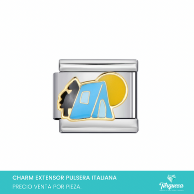 Dije Charm Casa Campaña para Pulsera Tipo Italiana Plateado Acero Inoxidable