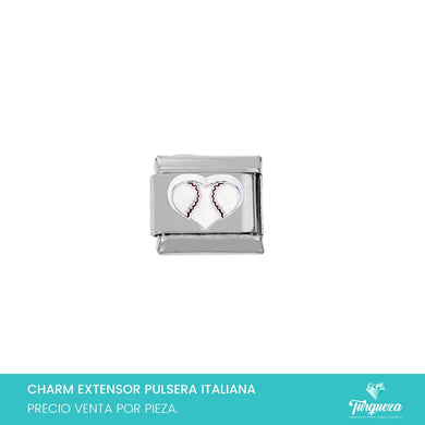 Dije Charm Corazon Pelota Baseball 3D para Pulsera Tipo Italiana Plateado Acero Inoxidable