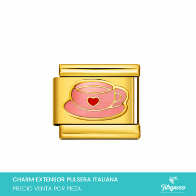 Dije Charm Tasa para Pulsera Tipo Italiana Dorado Acero Inoxidable
