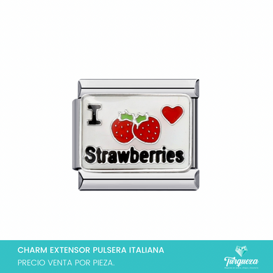 Dije Charm Strawberri para Pulsera Tipo Italiana Plateado Acero Inoxidable