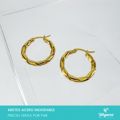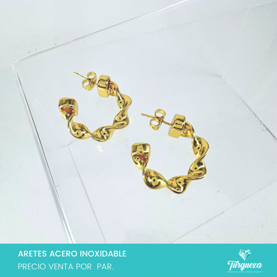 Arete Torcido Textura Dorado 2 cm Acero Inoxidable