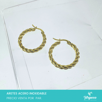 Arete Trenzado Doble Textura Dorado 2.5 cm Acero Inoxidable