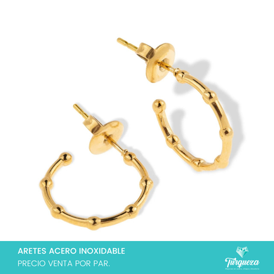 Arete Arracada Media Luna MED Dorado 2.5cm Acero Inoxidable