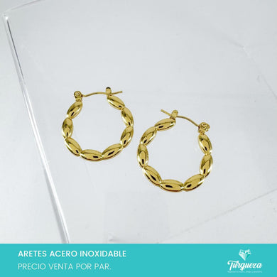 Aretes Oval Entrelineas Dorado Acero Inoxidable
