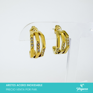 Arete Triple con Zirconias Dorado (2cm) Acero Inoxidable