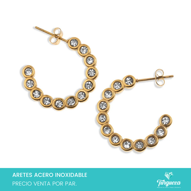 Aretes Arracadas Zirconias Incrustadas 2cm Doradas Acero Inoxidable