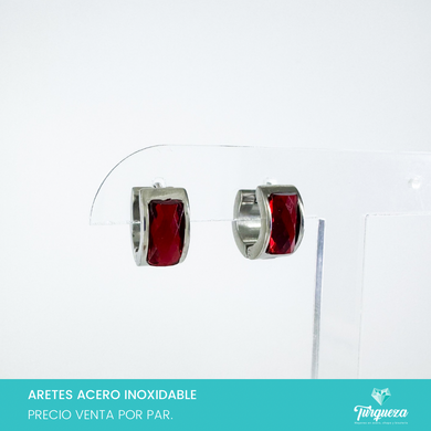 Arete Hoop Guinda Plateado Acero Inoxidable
