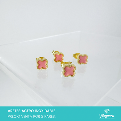 Arete VC Trebol Mini Rosa Dorado (2 pares) Acero Inoxidable
