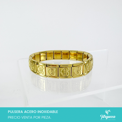Pulsera Tipo Italiana Dorada (18 charms 8mm x 1cm) Acero Inoxidable