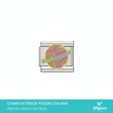 Dije Charm Planeta Rosa para Pulsera Tipo Italiana Plateado Acero Inoxidable