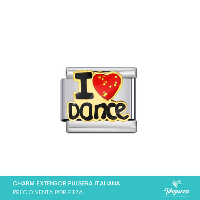 Dije Charm I Love Dance para Pulsera Tipo Italiana Plateado Acero Inoxidablel