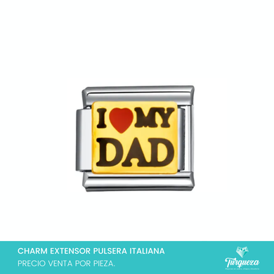 Dije Charm Love my Dad para Pulsera Tipo Italiana Plateado Acero Inoxidable