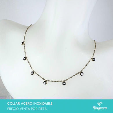 • Collar Ojitos Azul Marino Dorado Acero Inoxidable