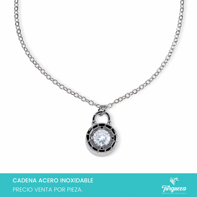 Collar Corazon Zirconia Plateado Acero Inoxidable
