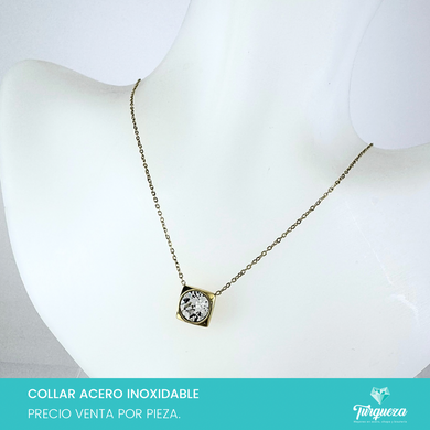 Collar Corbatin Zirconias Dorado Acero Inoxidable