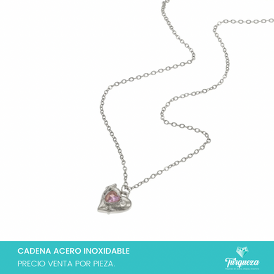 Collar Corazon Zirconia Rosa Acero Inoxidable
