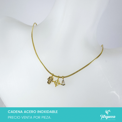 Collar Oval y Planchada Triple Dorado Acero Inoxidable