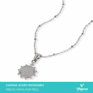 Collar Rosario Crucero Redondo Virgen de Guadalupe Acero Inoxidable