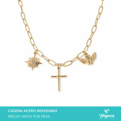 Collar Cruz y Angel Dorado Acero Inoxidable