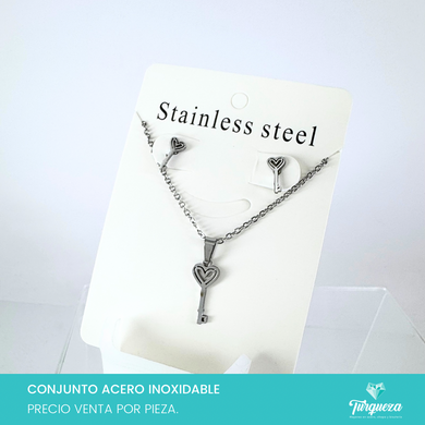 Conjunto Llave Plateado Acero Inoxidable