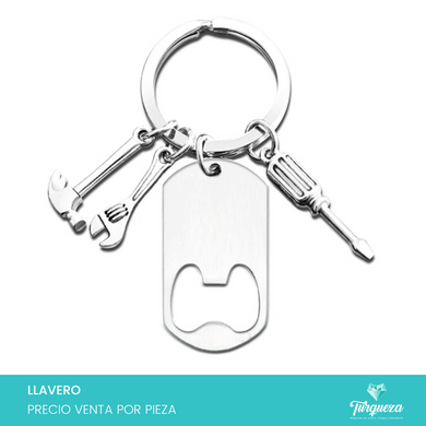 Llavero Abridor Botellas con Herramientas Plateado Acero