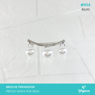 Broche Prendedor Plateado con Perlas colgante (4cm) #014