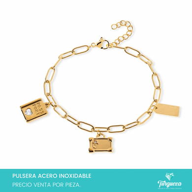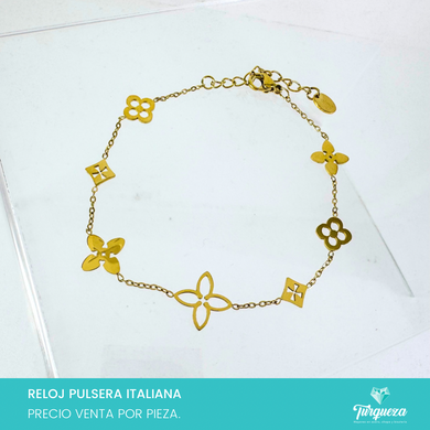 Pulsera Trebol 4 hojas Dorada Acero Inoxidable