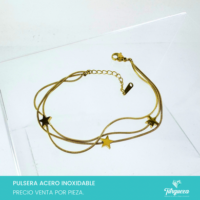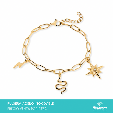 Pulsera Dijes Vibora y Estrella Dorado Acero Inoxidable
