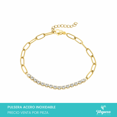 Pulsera Circulo Zirconias Dorado Acero Inoxidable