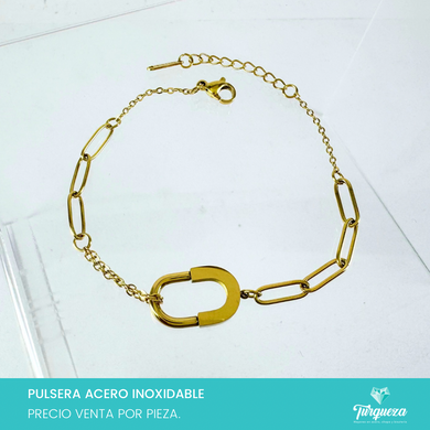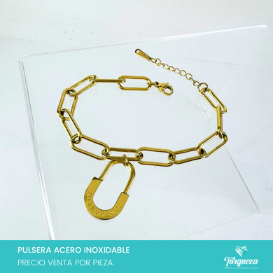 Pulsera Candado Corazon Dorada Acero Inoxidable