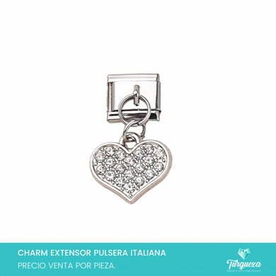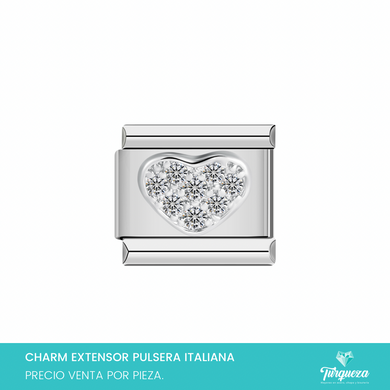 Dije Charm Corazon Zirconias Colgante para Pulsera Tipo Italiana Acero Inoxidable