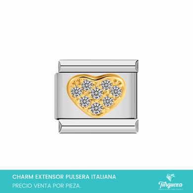 Dije Charm Corazon Zirconias 3D para Pulsera Tipo Italiana Dorado Acero Inoxidable