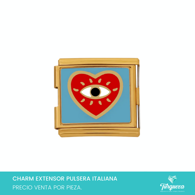 Dije Charm DOBLE Corazon Ojo para Pulsera Tipo Italiana Dorado Acero Inoxidable