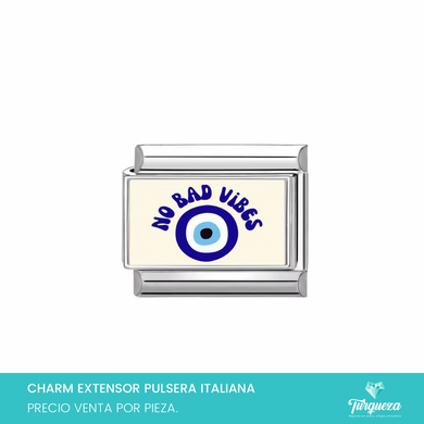 Dije Charm No Bad Vibes para Pulsera Tipo Italiana Plateado Acero Inoxidable