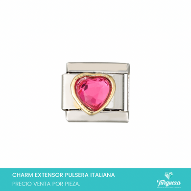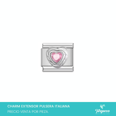 Dije Charm Corazon Zirconia Rosa para Pulsera Tipo Italiana Plateado Acero Inoxidable