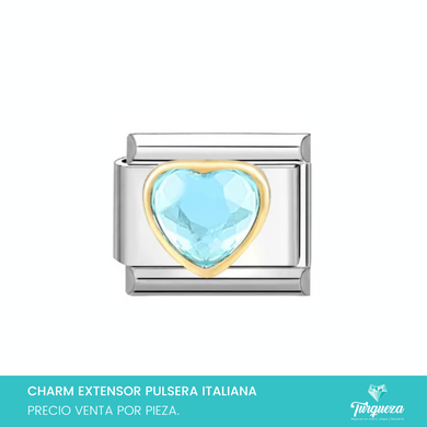 Dije Charm Corazon Azul para Pulsera Tipo Italiana Dorado Acero Inoxidable