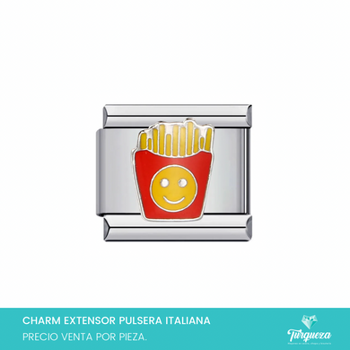Dije Charm Papas Fritas para Pulsera Tipo Italiana Plateado Acero Inoxidable