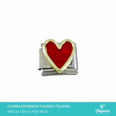 Dije Charm Corazon Rojo para Pulsera Tipo Italiana Acero Inoxidable
