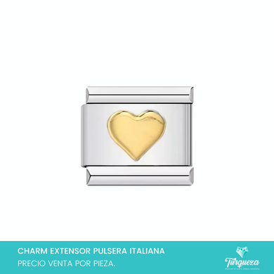 Dije Charm Corazon para Pulsera Tipo Italiana Dorado Acero Inoxidable