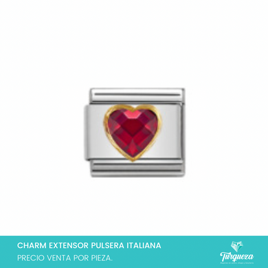 Dije Charm Corazon Zirconia Roja para Pulsera Tipo Italiana Acero Inoxidable