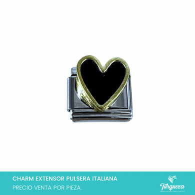 Dije Charm Corazon Negro para Pulsera Tipo Italiana Plateado Acero Inoxidable