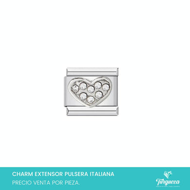 Dije Charm Corazon Zirconias para Pulsera Tipo Italiana Plateado Acero Inoxidable