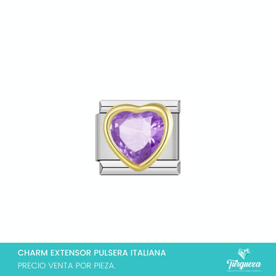 Dije Charm Corazon Zirconia Morada para Pulsera Tipo Italiana Plateado Acero Inoxidable
