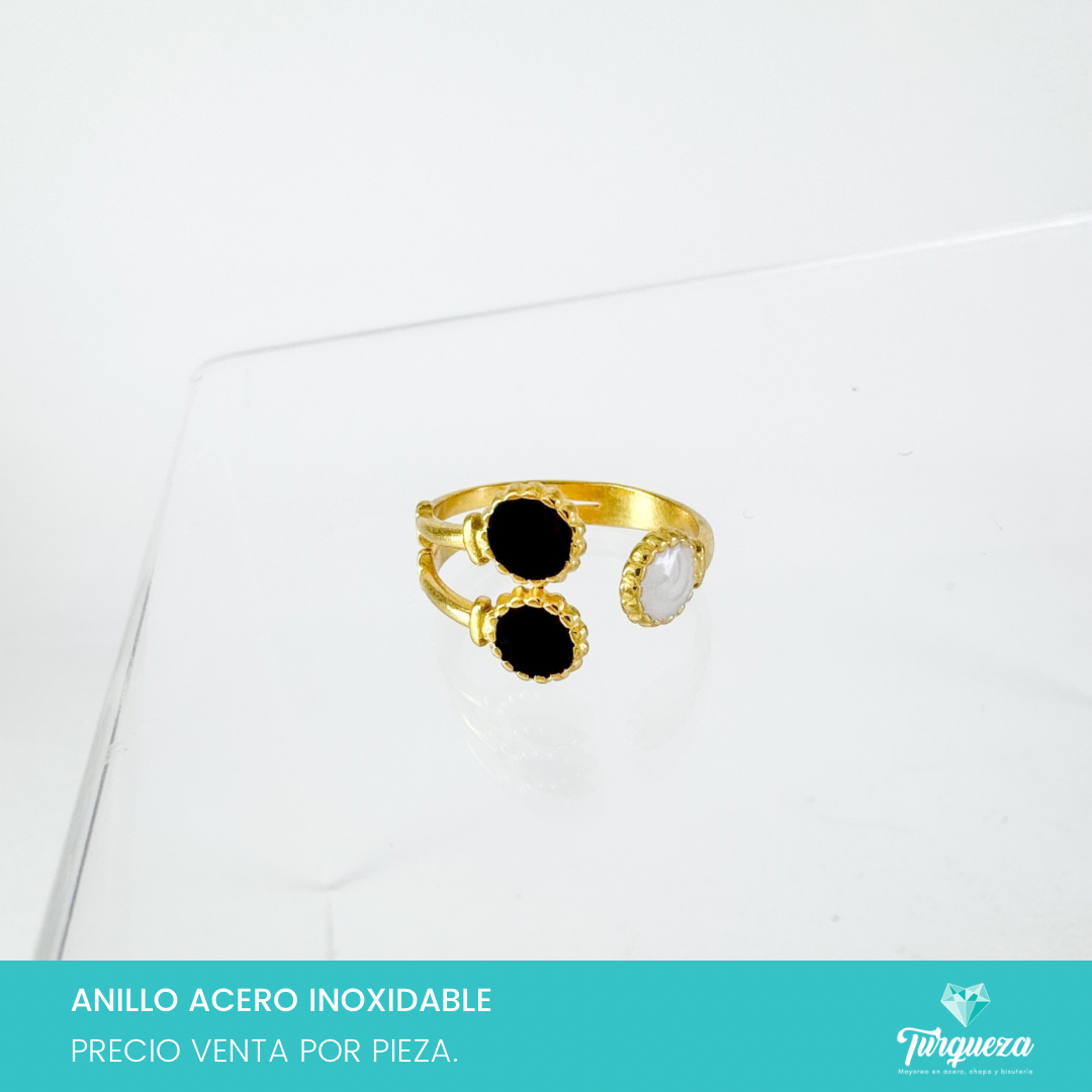 Anillo Negro Blanco Dorado Acero Inoxidable