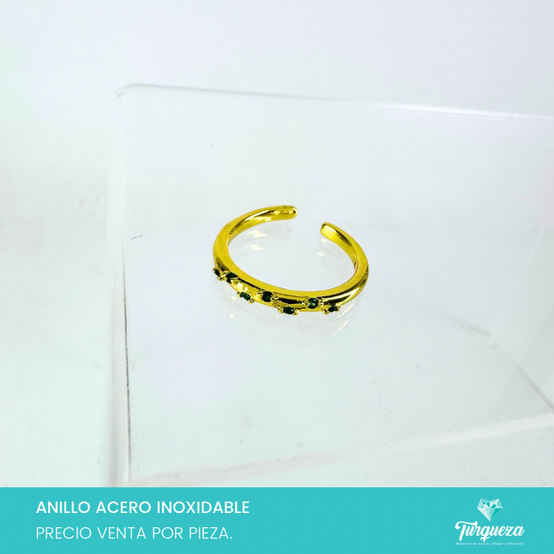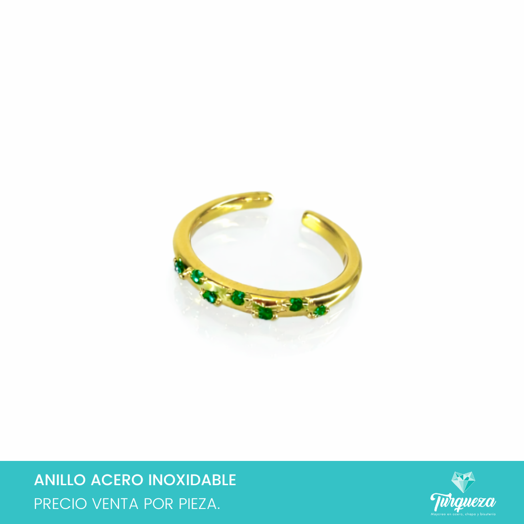 Anillo Zirconias Verdes Dorado Acero Inoxidable