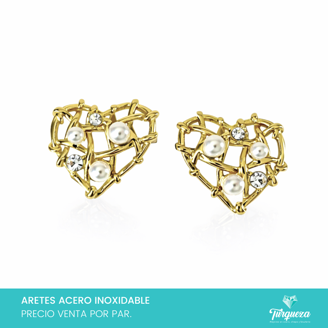 • Cargar imagen en el visor de la galería, Arete Corazon Perlas Acero Inoxidable