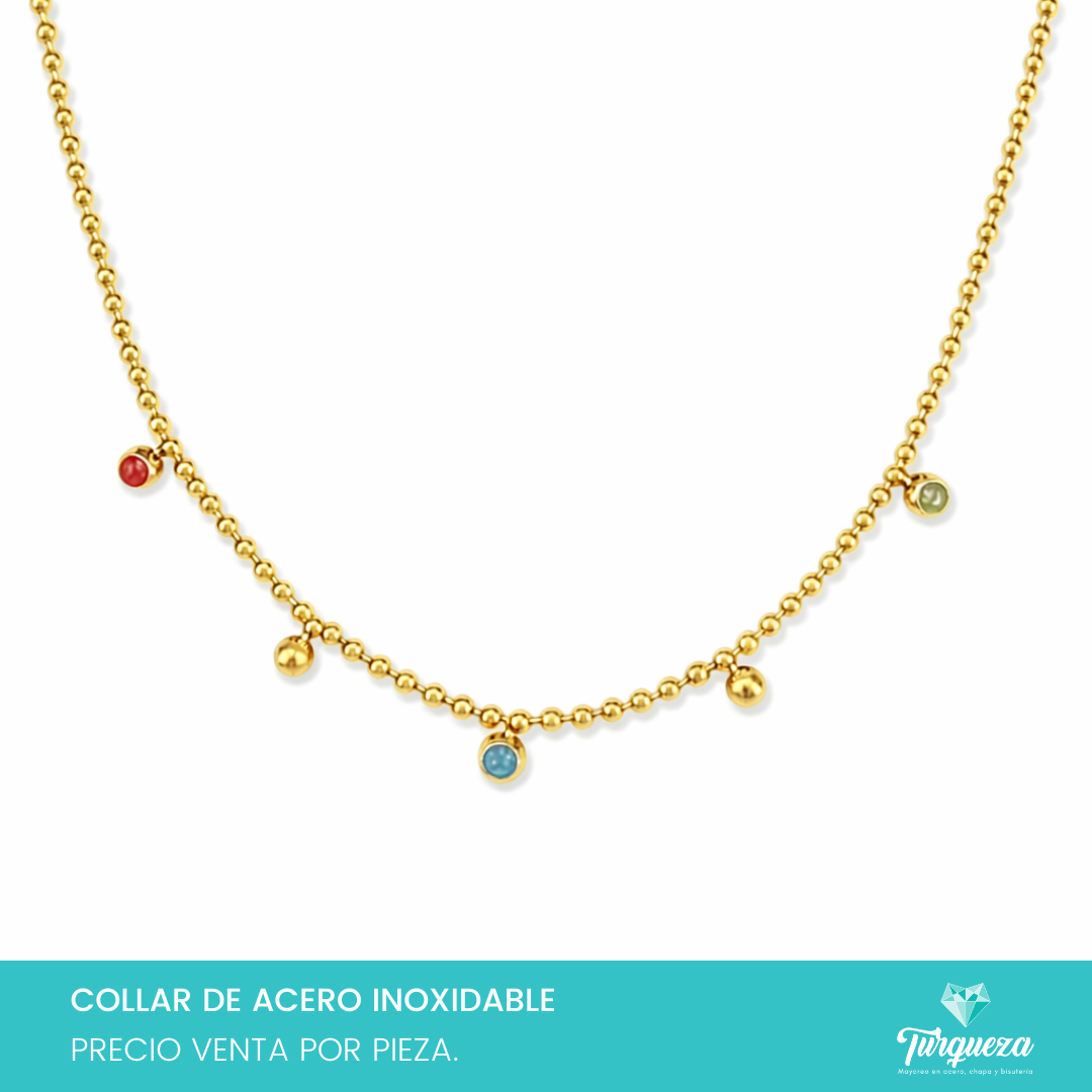 Collar Zirconias Colores Dorado Acero Inoxidable