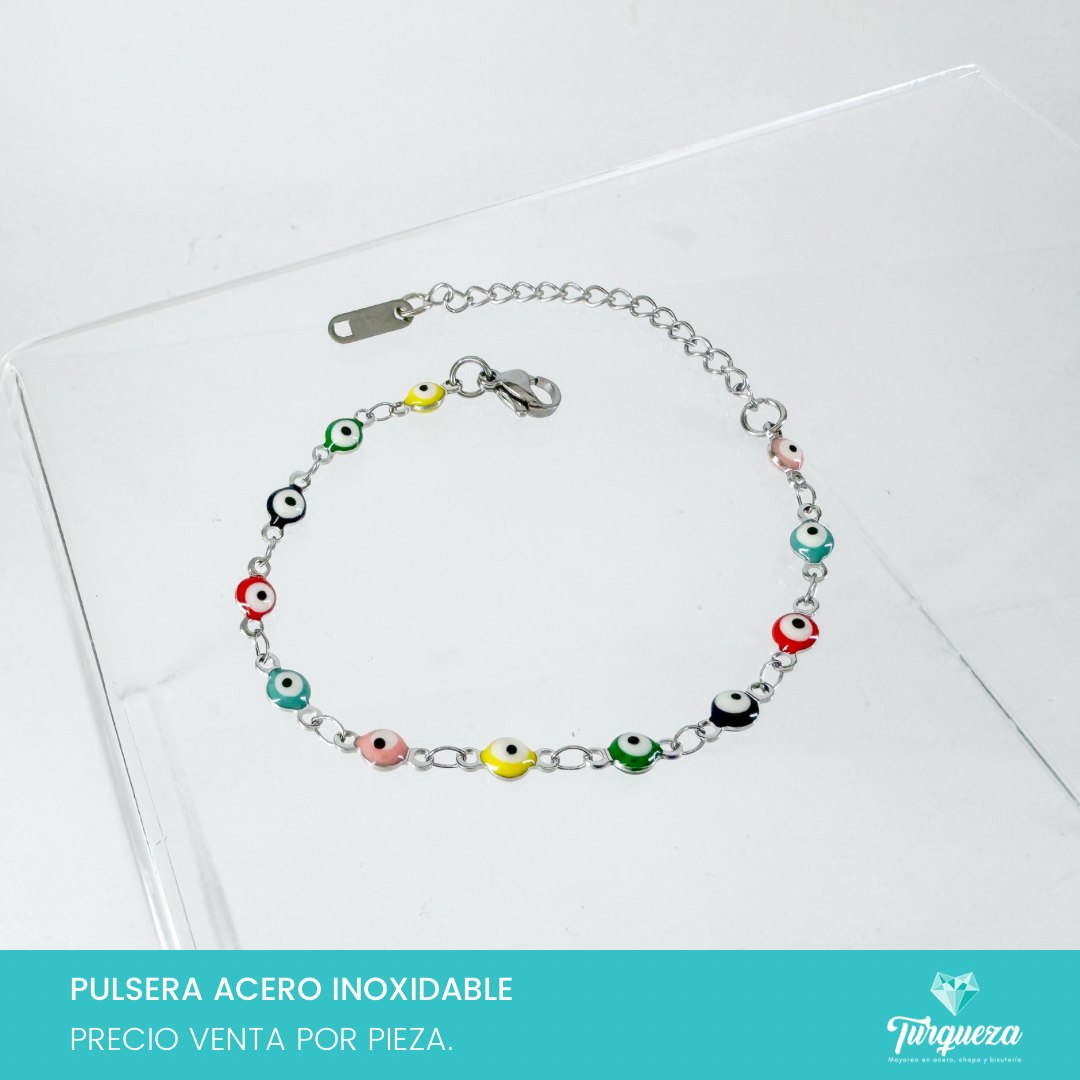 Pulsera Ojo Turco Multicolor Plateada (18cm-4mm) Acero Inoxidable
